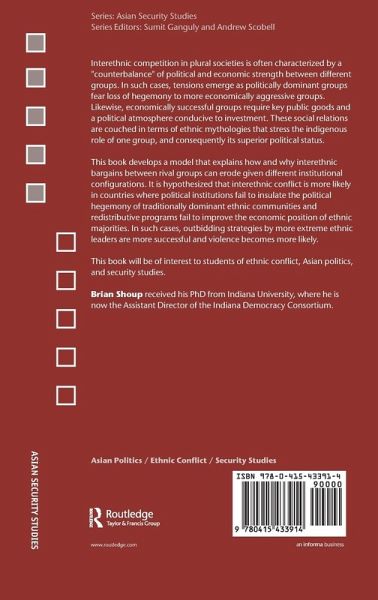 Interethnic competition in plural societies is often characterized by a 'counterbalance' of political and economic strength between different groups. In such cases, tensions emerge as politically dominant groups fear loss of hegemony to more economically aggressive groups. Likewise, economically successful groups require key public goods and a political atmosphere conducive to investment. These social relations are couched in terms of ethnic mythologies that stress the indigenous role of one group, and consequently its superior political status. This book develops a model that explains how and why interethnic bargains between rival groups can erode given different institutional configurations. It is hypothesized that interethnic conflict is more likely in countries where political institutions fail to insulate the political hegemony of traditionally dominant ethnic communities and redistributive programs fail to improve the economic position of ethnic majorities. In such cases, outbidding strategies by more extreme ethnic leaders are more successful and violence becomes more likely. Conflict and Cooperation in Multi-Ethnic States will be of interest to students of ethnic conflict, Asian politics and security studies.