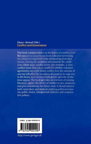 This book contains articles on the theory of conflict. Conflict appears in many forms, from a dictator terrorizing his country to organized crime demanding protection money. Among the questions addressed are the conditions which make conflict severe (for example, is class conflict worse than ethnic conflict?), whether voluntary agreements can avoid future conflict, how the outcome of one war will affect the incentives of countries to wage war in the future, how dictators hold power, and why revolutions appear. The book provides an overview of existing literature, applies the theory of conflict to new situations, and gives foundations for future work. It should interest both researchers and students studying political economy, public choice, international relations, and comparative politics.