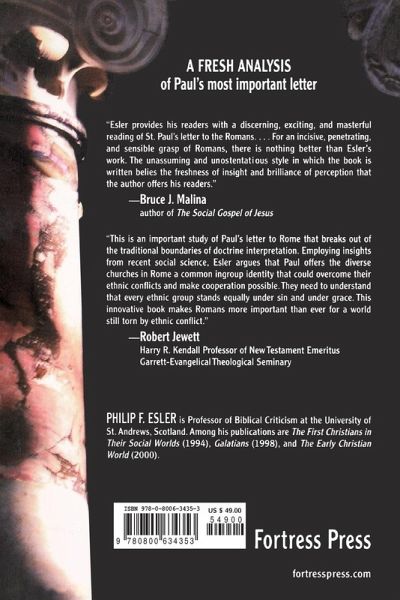 What is the purpose of Paul's letter to the Romans? Esler provides an illuminating analysis of this epistle, employing social-scientific methods along with epigraphy and archaeology. His conclusion is that the apostle Paul was attempting to facilitate the resolution of intergroup conflict among the Christ-followers of Rome, especially between Judeans and non-Judeans, and to establish a new identity for them by developing a form of group categorization that subsumes the various groups into a new entity.