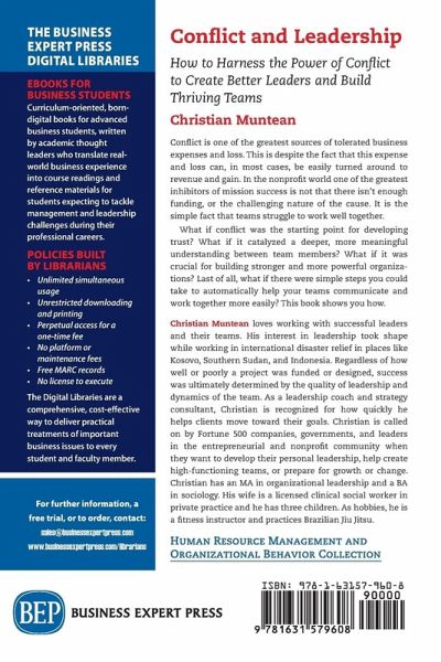 Conflict is one of the greatest sources of tolerated business expenses and loss. This is despite the fact that this expense and loss can, in most cases, be easily turned around to revenue and gain. In the nonprofit world one of the greatest inhibitors of mission success is not that there isn't enough funding, or the challenging nature of the cause. It is the simple fact that teams struggle to work well together. What if conflict was the starting point for developing trust? What if it catalyzed a deeper, more meaningful understanding between team members? What if it was crucial for building stronger and more powerful organizations? Last of all, what if there were simple steps you could take to automatically help your teams communicate and work together more easily? This book shows you how.