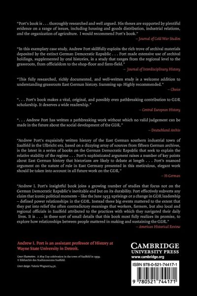 Why did the German Democratic Republic last for so long - longer, in fact, than the Weimar Republic and the Third Reich combined? This book looks at various political, social, and economic conflicts at the grass roots of the GDR in an attempt to answer this question and account for regime stability. A local study, it examines opposition and discontent in Saalfeld, an important industrial and agricultural district. Based on previously inaccessible primary sources as well as on interviews with local residents, the book offers a novel explanation for the durability of the regime by looking at how authorities tried to achieve harmony and consensus through negotiation and compromise. At the same time, it shows how official policies created deep-seated social cleavages that promoted stability by hindering East Germans from presenting a united front to authorities when mounting opposition or pressing for change. All of this provides an indirect answer to perhaps the major question of the postwar period: Why did the Cold War last as long as it did?