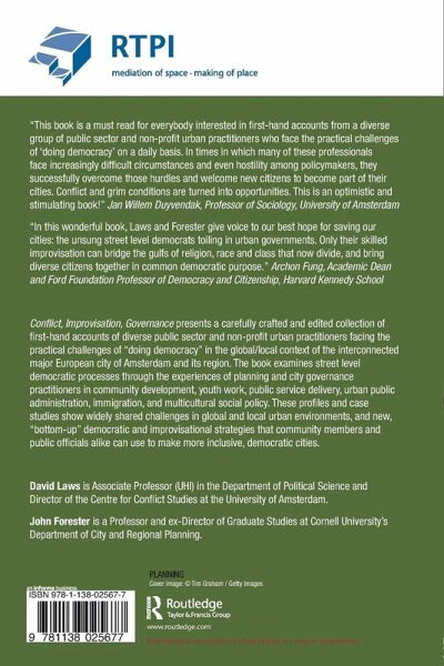 Conflict, Improvisation, Governance presents a carefully crafted and edited collection of first hand accounts of diverse public sector and non-profit urban practitioners facing the practical challenges of "doing democracy" in the global/local context of the interconnected major European city of Amsterdam and its region. The book examines street level democratic processes through the experiences of planning and city governance practitioners in community development, youth work, public service delivery, urban public administration, immigration and multi-cultural social policy. These profiles and case studies show widely shared challenges in global and local urban environments, and new, "bottom-up," democratic and improvisational strategies that community members and public officials alike can use to make more inclusive, democratic cities.