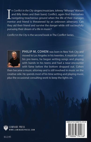 In Conflict in the City singers/musicians Johnny "Whoops" Watson and Billy Bates and their band, Conflict, again find themselves navigating treacherous ground when the life of their manager, mentor and friend is threatened by an unknown adversary. Can they aid their friend and survive the danger while still successfully pursuing their dream of a life in music? Conflict in the City is the second book in The Conflict Series.
