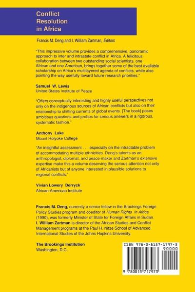 " While dramatic changes are taking place on the international scene and among the major powers, Africa continues to suffer from a multitude of violent conflicts. The toll of these conflicts is monumental in terms of war damage to productivity, scarce resources diverted to armaments and military organizations, and the resulting insecurity, displacement, and destruction. At the same time, Africans, in response to internal demands as well as to international changes, have begun to focus their attention and energies on these problems and are trying innovative ways to resolve differences by nonviolent means. The outcomes of these attempts have urgent and complex implications for the future of the continent with respect to human rights, principles of democracy, and economic development. In this book, African, European, and U.S. experts examine these important issues and the prospects for conflict management and resolution in Africa. They review the scholarship in resolution in light of international changes now taking place. Addressing the undying, internal causes of conflict, they question whether global events will promote peace or threaten to unleash even more conflict. The authors focus their analysis on the issues involved in African conflicts and examine the areas in need of the most dramatic changes. They offer specific recommendations for dealing with current problems, but caution that unless policymakers confront the security situation in Africa, further destruction to national unity and political and economic stability is imminent. Case studies and themes for further, long-term research are recommended."