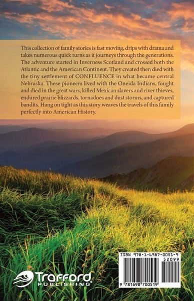 This collection of family stories is fast moving, drips with drama and takes numerous quick turns as it journeys through the generations. The adventure started in Inverness Scotland and crossed both the Atlantic and the American Continent. They created then died with the tiny settlement of CONFLUENCE in what became central Nebraska. These pioneers lived with the Oneida Indians, fought and died in the great wars, killed Mexican slavers and river thieves, endured prairie blizzards, tornadoes and dust storms, and captured bandits. Hang on tight as this story weaves the travels of this family perfectly into American History.
