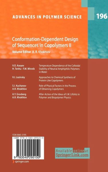 V.O. Aseyev, H. Tenhu, F. Winnik: Temperature Dependence of the Colloidal Stability of Neutral Amphiphilic Polymers in Water.- V.I. Lozinsky: Approaches to Chemical Synthesis of Protein-Like Copolymers.- S.I. Kuchanov, A.R. Khokhlov: Role of Physical Factors in the Processes of Obtaining of Copolymers.- A.Y. Grosberg, A.R. Khokhlov: "After-Action" of the Ideas of O.M. Lifshitz in Polymer and Biopolymer Physics.