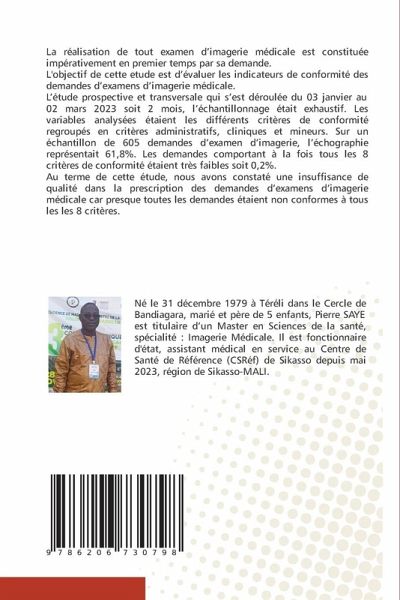 La réalisation de tout examen d'imagerie médicale est constituée impérativement en premier temps par sa demande. L'objectif de cette etude est d'évaluer les indicateurs de conformité des demandes d'examens d'imagerie médicale. L'étude prospective et transversale qui s'est déroulée du 03 janvier au 02 mars 2023 soit 2 mois, l'échantillonnage était exhaustif. Les variables analysées étaient les différents critères de conformité regroupés en critères administratifs, cliniques et mineurs. Sur un échantillon de 605 demandes d'examen d'imagerie, l'échographie représentait 61,8%. Les demandes comportant à la fois tous les 8 critères de conformité étaient très faibles soit 0,2%. Au terme de cette étude, nous avons constaté une insuffisance de qualité dans la prescription des demandes d'examens d'imagerie médicale car presque toutes les demandes étaient non conformes à tous les les 8 critères.