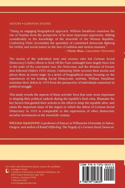 The stories of the individual men and women who led German Social Democracy's failed efforts to fend off the Nazi onslaught in 1933 have largely been lost in the wake of the cataclysmic war, the Holocaust, and the division of Europe that followed Hitler's victory. Confronting Hitler recovers their stories and places them at center stage. In a series of biographical essays focusing on the experiences of ten leading Social Democratic activists, Smaldone examines their defeat in 1933 from the perspective of individuals enmeshed in political struggle. This study reveals what aspects of these activists' lives were most important in shaping their political outlook during the republic's final crisis and it illustrates the key factors that guided their actions in the effort to keep the republic alive. In addition, the biographies raise the important issue of the degree to which the defeat of German Social Democracy in 1933 is comparable to the experiences of other democratic socialist movements in the twentieth century.