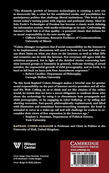 Terrorism, cyberbullying, child pornography, hate speech, cybercrime: along with unprecedented advancements in productivity and engagement, the Internet has ushered in a space for violent, hateful, and antisocial behavior. How do we, as individuals and as a society, protect against dangerous expressions online? Confronting the Internet's Dark Side is the first book on social responsibility on the Internet. It aims to strike a balance between the free speech principle and the responsibilities of the individual, corporation, state, and the international community. This book brings a global perspective to the analysis of some of the most troubling uses of the Internet. It urges net users, ISPs, and liberal democracies to weigh freedom and security, finding the golden mean between unlimited license and moral responsibility. This judgment is necessary to uphold the very liberal democratic values that gave rise to the Internet and that are threatened by an unbridled use of technology.