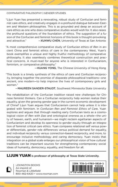 Confucian traditions have ingrained gender stratifications in Chinese culture today. Yuan proposes re-reading early Confucian texts as a vision of Ren with Dao with the unity of heaven, earth, and humanity, in order to reclaim the egalitarian aspects and develop openness for gender equity with integration of feminist critical care ethics.