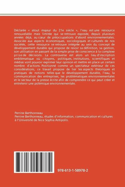 Déclarée « atout majeur du 21e siècle », l'eau est une ressource renouvelable mais limitée qui se retrouve exposée, depuis plusieurs années déjà, au coeur de préoccupations d'abord environnementales. Associée aux aspects économiques, sociologiques et culturels de nos sociétés, cette ressource se retrouve intégrée au sein du concept de développement durable qui propose de revoir sa définition, sa gestion, son utilisation en passant de la simple prise de conscience à la complexe prise de décisions. La controverse est alors un lieu d'inscription emblématique où citoyens, politiques, institutions, scientifiques et médias vont pouvoir exprimer leur opinion et mettre en place un certain nombre d'actions. Positionné comme un spectateur extérieur de ces considérations, ce travail propose de lier les aspects théoriques et pratiques de notions telles que le développement durable, l'eau, la communication des entreprises, les problématiques environnementales et le secteur de la presse écrite afin de comprendre ce qui peut créer et entretenir une polémique environnementale.