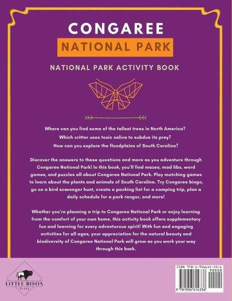 Fun activities for learning about Congaree National Park for ages 8-11. Help kids investigate what makes Congaree unique, with interesting facts, fun puzzles, and hands-on exercises. They learn how to protect endangered animals, what park rangers do, how to hone their outside observation skills, and so much more. Completing the activities will help kids learn about Congaree National Park! Pictures, jumbles, mazes, crossword puzzles, and instructions for real-life nature activities for kids will keep them engaged as they learn about the National Park System (NPS). This standout activity book includes: ¿ 45+ pages of independent activities¿Complete puzzles, unscramble things you can do in Congaree National Park, find all the hidden words about kayaking the waterways, solve a puzzle using American Sign Language, play map symbol sudoku, and more! ¿ Range of adaptable activities for anywhere¿The activity pages offer complementary learning with or without a visit to the floodplains of South Carolina. Activities are appropriate and flexible so all kids can start learning, no matter where they are. ¿ Important skill-building¿By stopping to notice and record what's going on around them, kids will practice important skills like creative thinking, observation, writing, drawing, wilderness safety, and more. This book is excellent for long car rides, screen-free time, vacations, or camping trips. This book makes the perfect gift for kids who love Junior Ranger programs when they visit parks. Great for children to stave off boredom on hiking trips, while backpacking, or during downtime when visiting national or state parks.