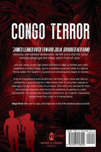 James leaned over toward Julia, grabbed her hand securely, and exhaled deliberately. He felt sorry that his cocky attitude almost got him killed, and in front of Julia. Julia and James, former high school sweethearts, meet up thirteen years after graduation in Eastern Congo. Julia is a volunteer nurse and James is a Special Forces soldier. The reunion is a surprise, but romance quickly begins to rekindle. A trip to a Congolese friend's garden turns terrifying when James and Julia are abducted by a group of notorious rebel soldiers bent on using their captives to leverage a broader control of the Masisi region. Their early love, dormant for more than a decade, blossoms amid the horrific conditions of captivity in a rebel encampment. The two become a beautiful, unified team as a hope for a successful escape moves from a plan to a riveting reality. Congo Terror offers horror, hope, and simple love in one of the deadliest places on Earth.