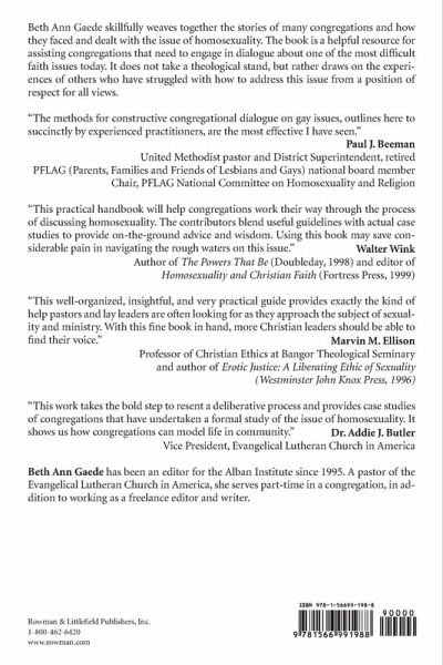Gaede skillfully weaves together the stories of many congregations and how they faced and dealt with the issue of homosexuality. A helpful resource for assisting congregations that seek to engage in dialogue about one of the most difficult faith issues today, the book does not take a theological stand, but rather draws on the experiences of others who have struggled with how to address this issue from a position of respect for all views.