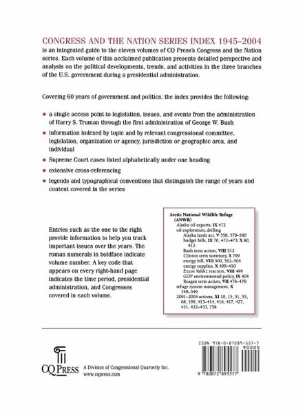 For the first time, students and scholars can quickly and easily trace topics from the complete Congress and the Nation series dating back to 1945. For collections with the series in the stacks, this is an invaluable tool for librarians and researchers to find and use the volume they need..