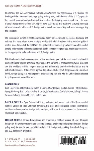 Leading scholars in the study of congress and US foreign policy address congress's vital role in determining how and why the US chooses it's international policy agendas. They address key aspects of congressional activism, assertiveness, and acquiescence in an era of divided government and polarized politics.