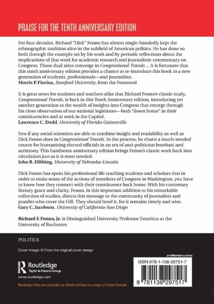 Written in preeminent legislative studies scholar Richard Fenno's "homespun" story-telling style, Congressional Travels argues that authenticity -- knowing what a representative is like in his/her district and looking beyond mere roll-call voting -- contributes significantly to understanding the full body of work done by our members of Congress. It further posits that the best way to gain a sense of authenticity is to do what Fenno is most famous for, i.e., making multiple trips and spending a great deal of time observing representatives at home in their districts, with their constituents. The book is engaging, quietly provocative, and unique, offering an alternative to what some consider the increasingly specialized and technical nature of political science. This tenth anniversary edition includes an illuminating new Foreword by renowned congressional scholar Morris P. Fiorina, adding to the appreciation of Richard Fenno and this work over the years.