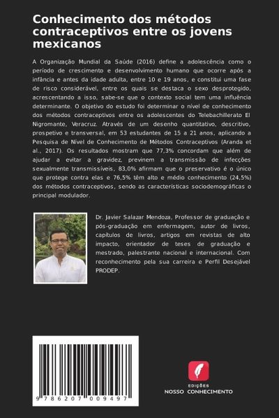 A Organização Mundial da Saúde (2016) define a adolescência como o período de crescimento e desenvolvimento humano que ocorre após a infância e antes da idade adulta, entre 10 e 19 anos, e constitui uma fase de risco considerável, entre os quais se destaca o sexo desprotegido, acrescentando a isso, sabe-se que o contexto social tem uma influência determinante. O objetivo do estudo foi determinar o nível de conhecimento dos métodos contraceptivos entre os adolescentes do Telebachillerato El Nigromante, Veracruz. Através de um desenho quantitativo, descritivo, prospetivo e transversal, em 53 estudantes de 15 a 21 anos, aplicando a Pesquisa de Nível de Conhecimento de Métodos Contraceptivos (Aranda et al., 2017). Os resultados mostram que 77,3% concordam que além de ajudar a evitar a gravidez, previnem a transmissão de infecções sexualmente transmissíveis, 83,0% afirmam que o preservativo é o único que protege contra elas e 76,5% têm alto e médio conhecimento (24,5%) dos métodos contraceptivos, sendo as características sociodemográficas o principal modulador.