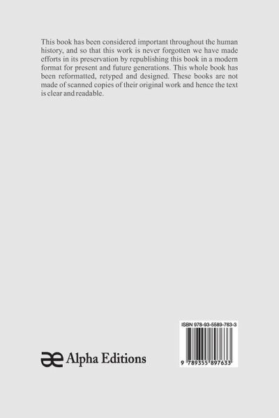 This book has been considered important throughout the human history, and so that this work is never forgotten we have made efforts in its preservation by republishing this book in a modern format for present and future generations. This whole book has been reformatted, retyped and designed. These books are not made of scanned copies and hence the text is clear and readable.