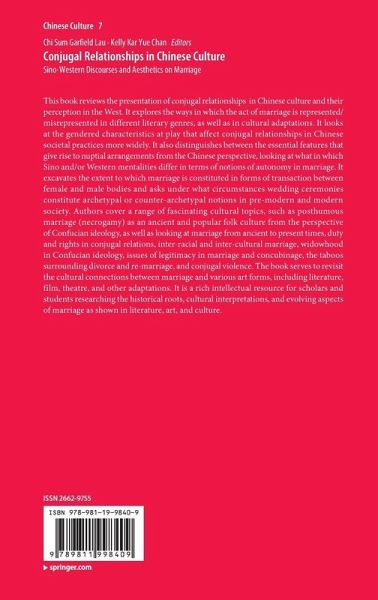 This book reviews the presentation of conjugal relationships in Chinese culture and their perception in the West. It explores the ways in which the act of marriage is represented/misrepresented in different literary genres, as well as in cultural adaptations. It looks at the gendered characteristics at play that affect conjugal relationships in Chinese societal practices more widely. It also distinguishes between the essential features that give rise to nuptial arrangements from the Chinese perspective, looking at what in which Sino and/or Western mentalities differ in terms of notions of autonomy in marriage. It excavates the extent to which marriage is constituted in forms of transaction between female and male bodies and asks under what circumstances wedding ceremonies constitute archetypal or counter-archetypal notions in pre-modern and modern society. Authors cover a range of fascinating cultural topics, such as posthumous marriage (necrogamy) as an ancient and popular folk culture from the perspective of Confucian ideology, as well as looking at marriage from ancient to present times, duty and rights in conjugal relations, inter-racial and inter-cultural marriage, widowhood in Confucian ideology, issues of legitimacy in marriage and concubinage, the taboos surrounding divorce and re-marriage, and conjugal violence. The book serves to revisit the cultural connections between marriage and various art forms, including literature, film, theatre, and other adaptations. It is a rich intellectual resource for scholars and students researching the historical roots, cultural interpretations, and evolving aspects of marriage as shown in literature, art, and culture.