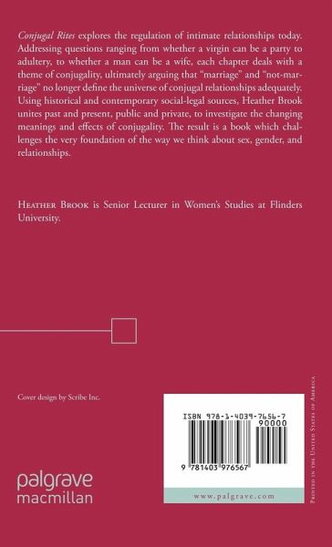 Conjugal Rites explores the legal shape of marriage as it has been determined by countless decisions concerning entry and exit into the ancient rite. Heather Brook examines the countless rules and protocols governing marriage that make it valid in the eyes of the law. She argues that the various sexual performatives associated with marriage can establish, reinforce, or rupture conjugal unity while exploring the historical and politcal regulations and prohibitions marriage has faced. Brook unites past and present, public and private, to investigate the changing meanings and effects of conjugality, and challenge the way we think about sex, gender and relationships.