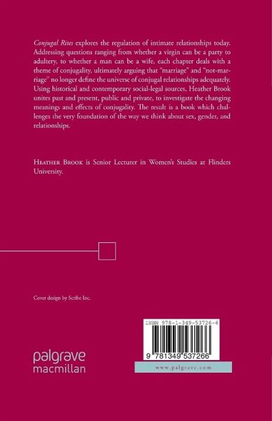 Conjugal Rites explores the legal shape of marriage as it has been determined by countless decisions concerning entry and exit into the ancient rite. Heather Brook examines the countless rules and protocols governing marriage that make it valid in the eyes of the law. She argues that the various sexual performatives associated with marriage can establish, reinforce, or rupture conjugal unity while exploring the historical and politcal regulations and prohibitions marriage has faced. Brook unites past and present, public and private, to investigate the changing meanings and effects of conjugality, and challenge the way we think about sex, gender and relationships.