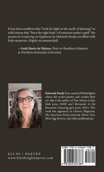 From barn swallows that "look for light in the myth of pleasing" to wild onions that "have the right look / of someone under a spell" the poems in Conjuring an Epiphany by Deborah Purdy are filled with little mysteries. Highly recommended! -Leah Huete de Maines, Poet-in-Residence Emerita at Northern Kentucky University