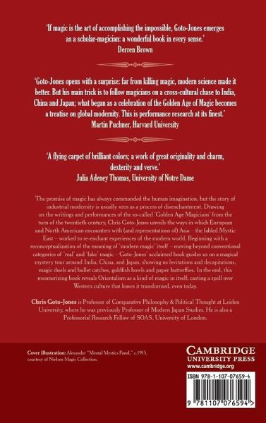 The promise of magic has always commanded the human imagination, but the story of industrial modernity is usually seen as a process of disenchantment. Drawing on the writings and performances of the so-called 'Golden Age Magicians' from the turn of the twentieth century, Chris Goto-Jones unveils the ways in which European and North American encounters with (and representations of) Asia - the fabled Mystic East - worked to re-enchant experiences of the modern world. Beginning with a reconceptualization of the meaning of 'modern magic' itself - moving beyond conventional categories of 'real' and 'fake' magic - Goto-Jones' acclaimed book guides us on a magical mystery tour around India, China, and Japan, showing us levitations and decapitations, magic duels and bullet catches, goldfish bowls and paper butterflies. In the end, this mesmerizing book reveals Orientalism as a kind of magic in itself, casting a spell over Western culture that leaves it transformed, even today.