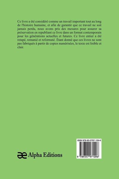 Connaissance de la Déesse, un livre classique et rare qui a été considéré comme essentiel tout au long de l'histoire de l'humanité, pour que cet ouvrage ne soit jamais oublié, nous chez Alpha Editions avons fait des efforts pour sa préservation en rééditant ce livre dans un format moderne pour les générations présentes et futures. Tout ce livre a été reformaté, retapé et conçu. Ces livres ne sont pas constitués de copies numérisées de leur ¿uvre originale et le texte est donc clair et lisible.