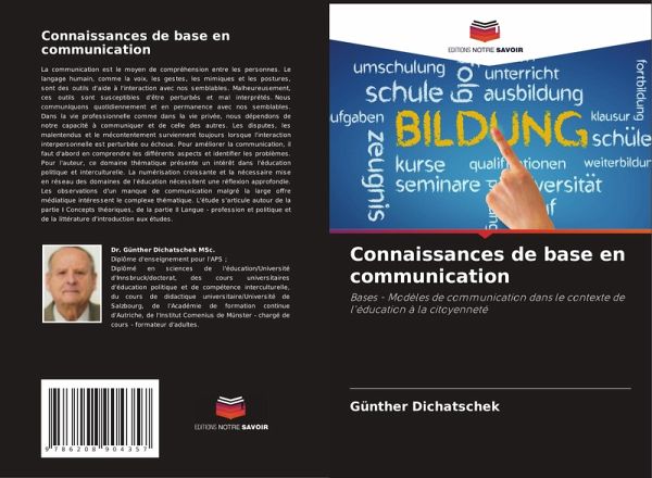 La communication est le moyen de compréhension entre les personnes. Le langage humain, comme la voix, les gestes, les mimiques et les postures, sont des outils d'aide à l'interaction avec nos semblables. Malheureusement, ces outils sont susceptibles d'être perturbés et mal interprétés. Nous communiquons quotidiennement et en permanence avec nos semblables. Dans la vie professionnelle comme dans la vie privée, nous dépendons de notre capacité à communiquer et de celle des autres. Les disputes, les malentendus et le mécontentement surviennent toujours lorsque l'interaction interpersonnelle est perturbée ou échoue. Pour améliorer la communication, il faut d'abord en comprendre les différents aspects et identifier les problèmes. Pour l'auteur, ce domaine thématique présente un intérêt dans l'éducation politique et interculturelle. La numérisation croissante et la nécessaire mise en réseau des domaines de l'éducation nécessitent une réflexion approfondie. Les observations d'un manque de communication malgré la large offre médiatique intéressent le complexe thématique. L'étude s'articule autour de la partie I Concepts théoriques, de la partie II Langue - profession et politique et de la littérature d'introduction aux études.