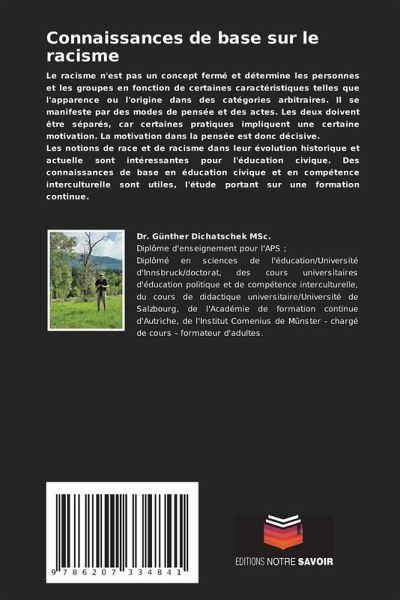 Le racisme n'est pas un concept fermé et détermine les personnes et les groupes en fonction de certaines caractéristiques telles que l'apparence ou l'origine dans des catégories arbitraires. Il se manifeste par des modes de pensée et des actes. Les deux doivent être séparés, car certaines pratiques impliquent une certaine motivation. La motivation dans la pensée est donc décisive. Les notions de race et de racisme dans leur évolution historique et actuelle sont intéressantes pour l'éducation civique. Des connaissances de base en éducation civique et en compétence interculturelle sont utiles, l'étude portant sur une formation continue.