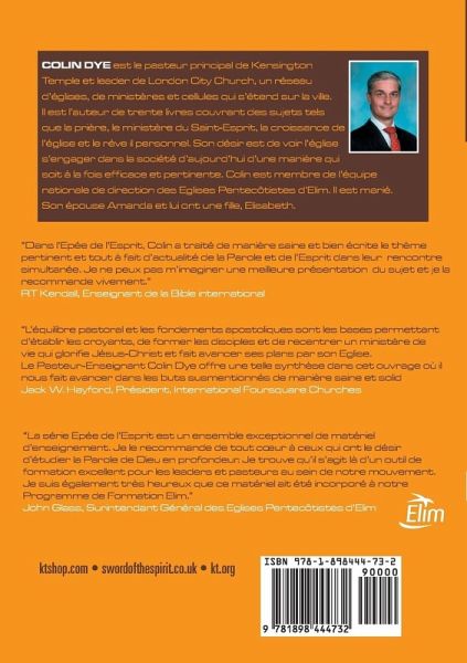 "Dans l'Epée de l'Esprit, Colin a traité de manière saine et bien écrite le thème pertinent et tout à fait d'actualité de la Parole et de l'Esprit dans leur rencontre simultanée. Je ne peux pas m'imaginer une meilleure présentation du sujet et je la recommande vivement." RT Kendall, Enseignant de la Bible international "L'équilibre pastoral et les fondements apostoliques sont les bases permettant d'établir les croyants, de former les disciples et de recentrer un ministère de vie qui glorifie Jésus-Christ et fait avancer ses plans par son Eglise. Le pasteur enseignant Colin Dye offre une telle synthèse dans cet ouvrage où il nous fait avancer dans les buts susmentionnés de manière saine et solide." Jack W. Hayford, Président, International Foursquare Churches "La série Epée de l'Esprit est un ensemble exceptionnel de matériel d'enseignement. Je le recommande de tout coeur à ceux qui ont le désir d'étudier la Parole de Dieu en profondeur. Je trouve qu'il s'agit là d'un outil de formation excellent pour les leaders et pasteurs au sein de notre mouvement. Je suis également très heureux que ce matériel ait été incorporé à notre Programme de Formation Elim." John Glass, Surintendant Général des Eglises Pentecôtistes d'Eli
