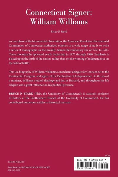 This is a biography of William Williams, a merchant, a delegate for Connecticut to the Continental Congress, and a signer of the Declaration of Independence. As the son of a minister, Williams studied theology and law at Harvard, and throughout his life religion was a great influence on his political presence. As one phase of the Bicentennial observation, The American Revolution Bicentennial Commission of Connecticut has authorized scholars in a wide range of study to write a series of monographs on the broadly defined Revolutionary Era of 1763 to 1787. These monographs [appeared] yearly beginning in 1973 through 1980. Emphasis is placed upon the birth of the nation, rather than on the winning of independence on the field of battle.
