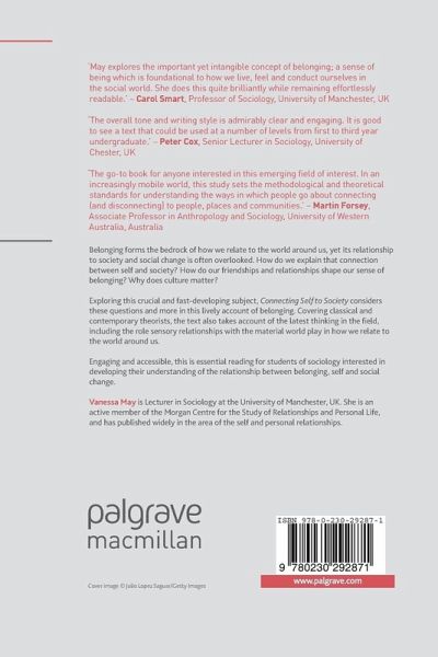 PART I: SELF AND SOCIETY IN SOCIAL THEORY 1. Introduction 2. Where it All Began: The Sociological Classics 3. The Loss of Tradition: Diminished or Reflexive Selves? 4. The Relationship between Self and Society 5. Everyday Personal Life PART II: SELF, BELONGING AND SOCIAL CHANGE 6. Belonging: A Window into Social Change 7. Cultural Belongings 8. Relational Belongings 9. Sensory Belongings 10. Conclusion: Self and Belonging in a Changing World.