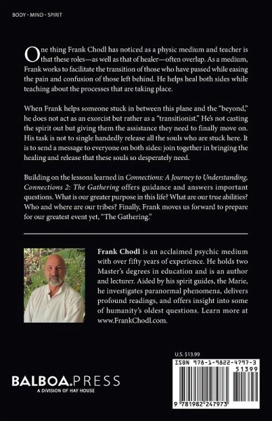 One thing I have noticed throughout my life as a psychic medium and teacher is that these roles, as well as that of healer, often overlap. As a medium, I work to facilitate the transitioning of those who have passed as well as easing the pain and confusion of those left behind. I help to heal both sides while teaching my clients about the processes that are taking place When you look more deeply into the various modalities and methods of the psychics, healers, teachers, you may begin to see many aspects of all three within yourselves. When I help someone, who is stuck in between this plane and the "beyond," I am not acting as an exorcist but rather as a transitionist. I am not casting them out. I am giving them the assistance they need in order to open the path to finally move on. Our task is not to release all those souls who have become stuck here single handedly. It is to send out the message to everyone on both sides to join together in bringing the healing and release that those souls so desperately need. Try to imagine the intense energy of two millennia of trapped souls simultaneously rejoining with the universe. Building on the lessons learned in my last book, Connections: A Journey to Understanding, in, Connections 2: The Gathering, I offer guidance to help us all answer questions including: ¿ What is our greater purpose in this life? ¿ What are our true abilities? ¿ Who and where are our tribes? and moves us forward to prepare us for our greatest event yet, "The Gathering."