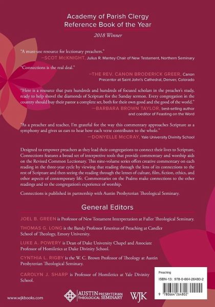 Designed to empower preachers as they lead their congregations to connect their lives to Scripture, Connections features a broad set of interpretive tools that provide commentary and worship aids on the Revised Common Lectionary.