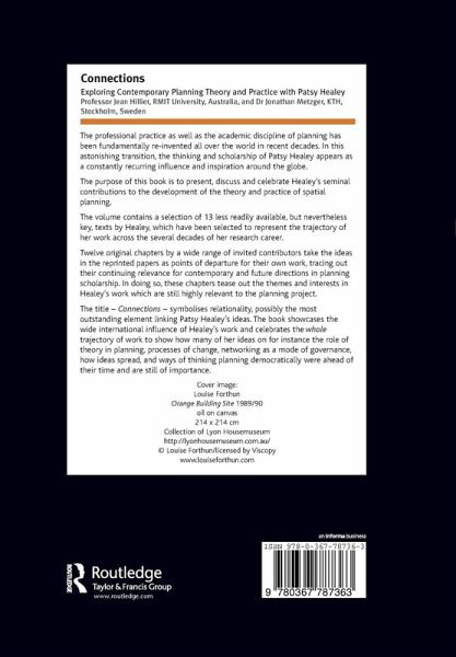 The professional practice as well as the academic discipline of planning has been fundamentally re-invented all over the world in recent decades. In this astonishing transition, the thinking and scholarship of Patsy Healey appears as a constantly recurring influence and inspiration around the globe. The purpose of this book is to present, discuss and celebrate Healey's seminal contributions to the development of the theory and practice of spatial planning. The volume contains a selection of 13 less readily available, but nevertheless, key texts by Healey, which have been selected to represent the trajectory of Patsy's work across the several decades of her research career. 12 original chapters by a wide range of invited contributors take the ideas in the reprinted papers as points of departure for their own work, tracing out their continuing relevance for contemporary and future directions in planning scholarship. In doing so, these chapters tease out the themes and interests in Healey's work which are still highly relevant to the planning project. The title - Connections - symbolises relationality, possibly the most outstanding element linking Patsy's ideas. The book showcases the wide international influence of Patsy's work and celebrates the whole trajectory of work to show how many of her ideas on for instance the role of theory in planning, processes of change, networking as a mode of governance, how ideas spread, and ways of thinking planning democratically were ahead of their time and are still of importance.