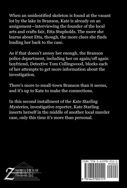 When an unidentified skeleton is found at the vacant lot by the lake in Branson, Kate is already on an assignment-interviewing the founder of the local arts and crafts fair, Etta Stupholds. The more she learns about Etta, though, the more clues she finds leading her back to the case. As if that doesn't annoy her enough, the Branson police department, including her on again/off again boyfriend, Detective Tom Collingwood, blocks each of her attempts to get more information about the investigation. There's more to small-town Branson than it seems, and it's up to Kate to make the connections. In this second installment of the Kate Starling Mysteries, investigative reporter, Kate Starling inserts herself in the middle of another local murder case, only this time it's more than personal.