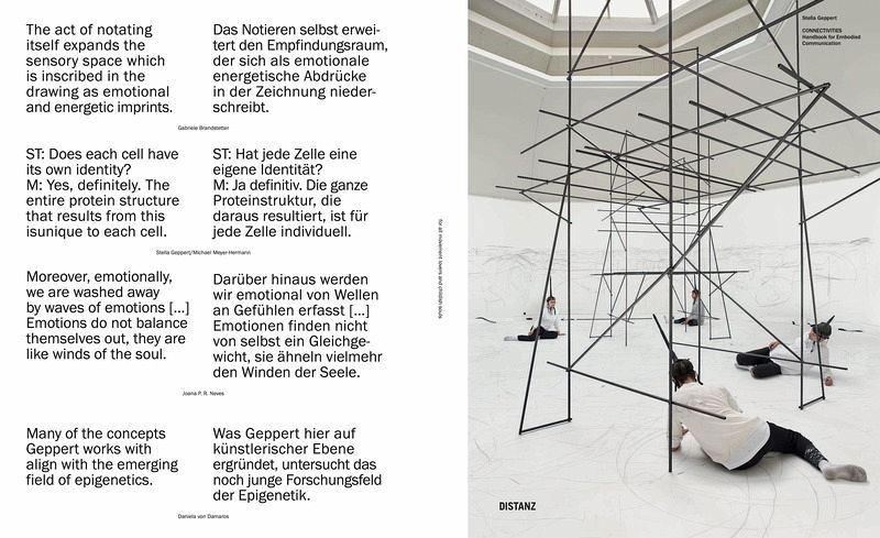 Die Publikation CONNECTIVITIES. Handbook for Embodied Communication gibt erstmals einen umfassenden Einblick in Stella Gepperts Arbeitsweise. Die Auseinandersetzung mit Gepperts konzeptionellen und kollektiven Praktiken wird von Textbeiträgen aus den Bereichen Tanzwissenschaft (Gabriele Brandstetter), Immunologie (Michael Meyer-Hermann), Kunstwissenschaft und Körpertechniken (Joana P. R. Neves, Daniela von Damaros) beleuchtet. In CONNECTIVITIES wird das Werk in seiner multidimensionalen Vernetzung unsichtbarer Kommunikationsformen wie der Stoffwechselprozesse der Atmung und Organe, sprachbasierter Kopfbewegungen, Zellkommunikation und Gesten der kollektiven Landschaftszerstörung verhandelt.