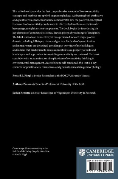 This edited work provides the first comprehensive account of how connectivity concepts and methods are applied in geomorphology. Addressing both qualitative and quantitative aspects, this volume demonstrates how the powerful conceptual framework of connectivity can be used to effectively describe material transfer between geomorphic system components. The book begins by introducing the key elements of connectivity science, drawing from a broad range of disciplines. The latest research on connectivity is then presented for each major process domain, including hillslopes, rivers and glaciers. Methods of quantification and measurement are described, providing an overview of methodologies and indices that can be used to assess connectivity as a property of soils and landscapes, and approaches for modelling connectivity are reviewed. The book concludes with an examination of applications of connectivity thinking in environmental management. Accessible and self-contained, this text is a key resource for practitioners, researchers and graduate students in geomorphology.