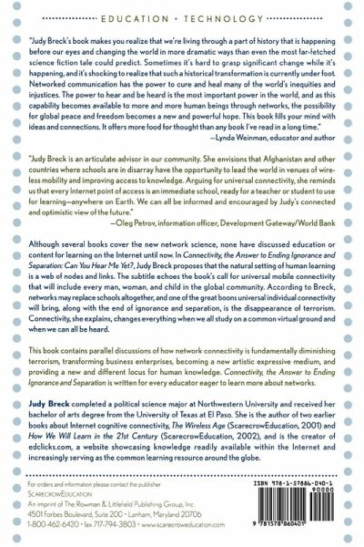 Applying the hot, new network theories to education, Breck describes an emerging and entirely new medium of expression platformed in connectivity that is creating compelling new learning assets nestled into an online webbed matrix of academic subjects. She argues for abandoning standards and grade separation for the natural knowledge context formation arising spontaneously within the Internet. It is a fascinating world where schools are replaced by networks and universal individual connectivity brings about astounding changes when we all study on a common virtual ground and when we can all be heard.