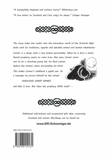 Sind Sie fasziniert von der geheimnisvollen Welt der schottischen Highlands, wo Männer im Rock mit todernster Mine und größtem Krafteinsatz Baumstämme werfen oder sich bei melancholischer Dudelsackmusik ihrem Wasser des Lebens, dem Whisky, hingeben? Begleiten Sie Conner auf seinem Weg vom Lämmchen zum Widder, der allen bösen Omen trotzt und ein sati(e)risch wahrer Schotte wird: Highland Games, Traditionen leben und sich verlieben. Nach ihrem Roman Die Legende von Conner MacSheep war es der Autorin eine Herzensangelegenheit, den besonderen Darstellern bildliches Leben einzuhauchen und die Story auch den schottischen Ideengebern zugänglich zu machen, auf englisch. Der Usinger Anzeiger meint: Eine Liebeserklärung an Schottland und nicht nur seine Schafe.Spannung, Gänsehaut und Schmunzeln garantiert.Alliteratus says: A beautyfully imagined and written story! Conner is a sheep with a very human personality. When he is born a much feared prophecy seems to come true. But since Conner turns out to be a charming young lad, his flock cannotbelieve the sinister omen surrounding his birth. This makes Conners childhood a joyful one. As a teenager he proves himself at the annual HIGHLAND SHEEP GAMES and falls in love. But then the prophecy fulfils itself.