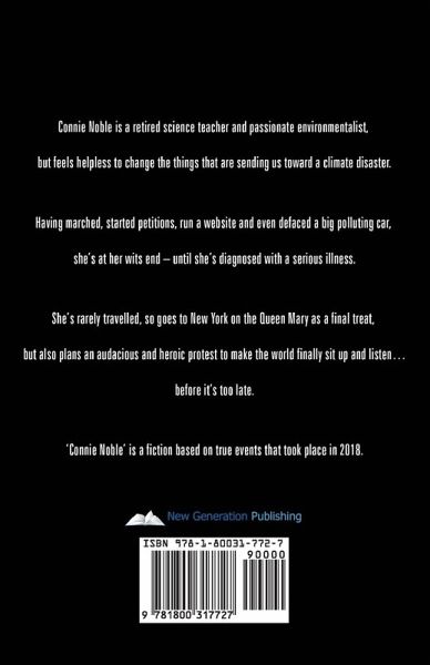 Connie Noble is a retired science teacher and passionate environmentalist, but feels helpless to change the things that are sending us toward a climate disaster. Having marched, started petitions, run a website and even defaced a big polluting car, she's at her wits end - until she's diagnosed with a serious illness. She's rarely travelled, so goes to New York on the Queen Mary as a final treat, but also plans an audacious and heroic protest to make the world finally sit up and listen...before it's too late. 'Connie Noble' is a fictional novel based on true events that took place in 2018.