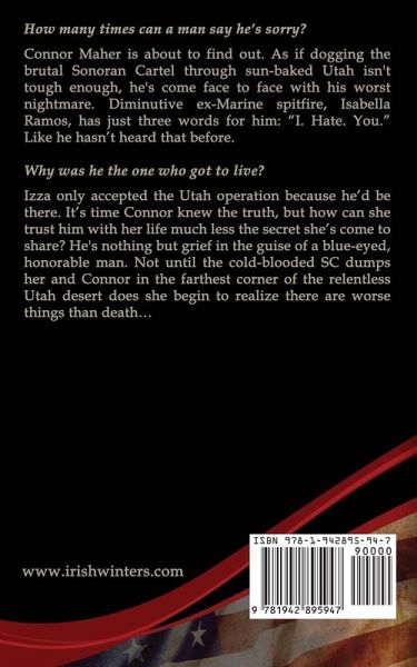 BOOK DESCRIPTION: How many times can a man say he's sorry? Connor Maher is about to find out. As if dogging the brutal Sonoran Cartel through sun-baked Utah isn't tough enough, he's come face to face with his worst nightmare. Diminutive, ex-Marine spitfire Isabella Ramos has just three words for him: I. Hate. You. Like he hasn't heard that before. Why was he the one who got to live? Izza only accepted the Utah operation because he'd be there. It's time Connor knew the truth, but how can she trust him with her life much less the secret she's come to share? He's nothing but grief in the guise of an blue-eyed, honorable man. Not until the cold-blooded SC dumps her and Connor in the farthest corner of the relentless Utah desert does she begin to realize.... There are worse things than death.