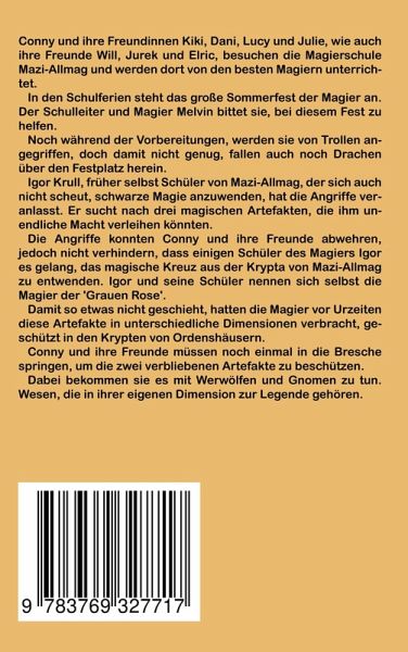 Conny und ihre Freundinnen Kiki, Dani, Lucy und Julie, wie auch ihre Freunde Will, Jurek und Elric, besuchen die Magierschule Mazi-Allmag und werden dort von den besten Magiern unterrichtet. In den Schulferien steht das große Sommerfest der Magier an. Der Schulleiter und Magier Melvin bittet sie, bei diesem Fest zu helfen. Noch während der Vorbereitungen, werden sie von Trollen angegriffen, doch damit nicht genug, fallen auch noch Drachen über den Festplatz herein. Igor Krull, früher selbst Schüler von Mazi-Allmag, der sich auch nicht scheut, schwarze Magie anzuwenden, hat die Angriffe veranlasst. Er sucht nach drei magischen Artefakten, die ihm unendliche Macht verleihen könnten. Die Angriffe konnten Conny und ihre Freunde abwehren, jedoch nicht verhindern, dass einigen Schüler des Magiers Igor es gelang, das magische Kreuz aus der Krypta von Mazi-Allmag zu entwenden. Igor und seine Schüler nennen sich selbst die Magier der 'Grauen Rose'. Damit so etwas nicht geschieht, hatten die Magier vor Urzeiten diese Artefakte in unterschiedliche Dimensionen verbracht, geschützt in den Krypten von Ordenshäusern. Conny und ihre Freunde müssen noch einmal in die Bresche springen, um die zwei verbliebenen Artefakte zu beschützen. Dabei bekommen sie es mit Werwölfen und Gnomen zu tun. Wesen, die in ihrer eigenen Dimension zur Legende gehören.