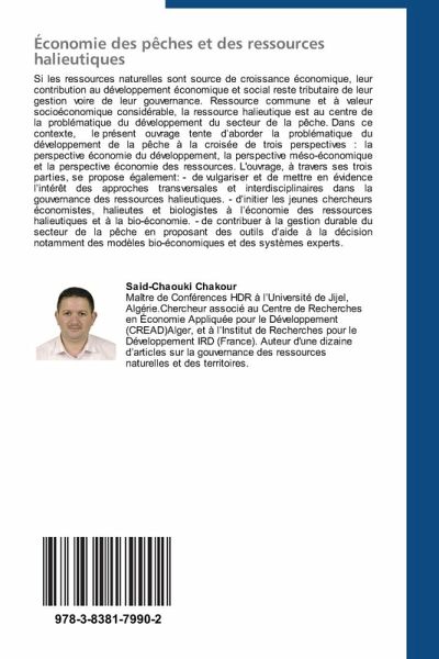 Si les ressources naturelles sont source de croissance économique, leur contribution au développement économique et social reste tributaire de leur gestion voire de leur gouvernance. Ressource commune et à valeur socioéconomique considérable, la ressource halieutique est au centre de la problématique du développement du secteur de la pêche. Dans ce contexte, le présent ouvrage tente d aborder la problématique du développement de la pêche à la croisée de trois perspectives : la perspective économie du développement, la perspective méso-économique et la perspective économie des ressources. L'ouvrage, à travers ses trois parties, se propose également: - de vulgariser et de mettre en évidence l intérêt des approches transversales et interdisciplinaires dans la gouvernance des ressources halieutiques. - d initier les jeunes chercheurs économistes, halieutes et biologistes à l économie des ressources halieutiques et à la bio-économie. - de contribuer à la gestion durable du secteur de la pêche en proposant des outils d aide à la décision notamment des modèles bio-économiques et des systèmes experts.