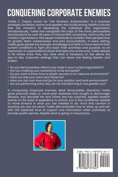 This book reflects corporate experiences, from what I have observed happening to others and the difficult times through which I helped mentees, family, and friends. Corporate is not limited to just large organizations. It has everything to do with any environment where people come together to complete a set of objectives, from fortune five hundred companies to church organizations to college campuses, to name a few. I intend to fully expose situations, personalities, and mindsets that so many have endured to give the reader insight into what it feels like when exposed to those behaviors. I will also share the shift in mindset, personality, and (in some cases) situations that helped to overcome what felt impossible at the time.