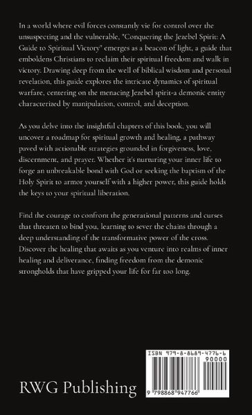 In a world where evil forces constantly vie for control over the unsuspecting and the vulnerable, "Conquering the Jezebel Spirit: A Guide to Spiritual Victory" emerges as a beacon of light, a guide that emboldens Christians to reclaim their spiritual freedom and walk in victory. Drawing deep from the well of biblical wisdom and personal revelation, this guide explores the intricate dynamics of spiritual warfare, centering on the menacing Jezebel spirit-a demonic entity characterized by manipulation, control, and deception. As you delve into the insightful chapters of this book, you will uncover a roadmap for spiritual growth and healing, a pathway paved with actionable strategies grounded in forgiveness, love, discernment, and prayer. Whether it's nurturing your inner life to forge an unbreakable bond with God or seeking the baptism of the Holy Spirit to armor yourself with a higher power, this guide holds the keys to your spiritual liberation. Find the courage to confront the generational patterns and curses that threaten to bind you, learning to sever the chains through a deep understanding of the transformative power of the cross. Discover the healing that awaits as you venture into realms of inner healing and deliverance, finding freedom from the demonic strongholds that have gripped your life for far too long. "Conquering the Jezebel Spirit: A Guide to Spiritual Victory" extends beyond mere theoretical knowledge, urging readers to actively embody the teachings and emerge as doers of the Word, rooted firmly in the love and righteousness that shields against the enemy's advances. Here, you will find a holistic approach to spiritual wellbeing, embracing a lifestyle of forgiveness and blessing, and learning the art of laying down one's troubles at the feet of Jesus, seeking His divine guidance in every aspect of life. As you stand on the cusp of a new beginning, arm yourself with the invaluable insights packed within this book- a tool forged in the fires of divine wisdom, ready to facilitate your journey to spiritual victory. Unite with fellow believers in this crucial end-times battle, as the forces of darkness escalate their efforts, knowing their time is short. Let this book be your battle plan, a wellspring of strategies steeped in divine truths to guide you in the war against the Jezebel spirit, guiding you to a place of victory, rooted in the strength and grace that can only be found in a life surrendered to Christ. Be prepared to undergo a transformation of heart and spirit as you learn to walk in agape love, a love that transcends worldly desires, ushering in a new era of spiritual depth and connection. Through "Conquering the Jezebel Spirit: A Guide to Spiritual Victory," you are called to a higher standard of living, to embody the wisdom of serpents while maintaining the purity of doves, as advocated by Jesus Himself in Matthew 10:16. This is more than a guide; it is an invitation to reclaim your spiritual heritage, to walk in victory, unyielding, unafraid, and triumphant in the face of the adversary.