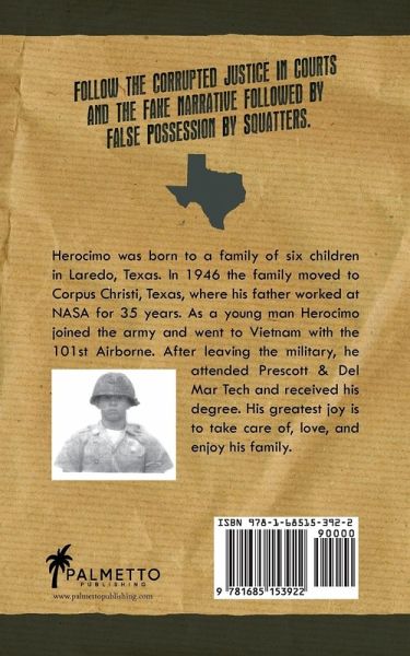 This second book in Herocimo's Conquest series is the true story of squatters taking over Los Ojuelos Ranch, which belonged to Herocimo's great-great-great-grandfather. This installment follows the squatters' friends in the courthouse, and documents fraudulent judges, attorneys, and state agencies. The state bar, judicial commission, and regional and administrative judges all allowed this corruption to happen so Herocimo's family lost their ranch. How and why could this happen? Los Ojuelos Ranch was illegally taken by well-educated, greedy, and unremorseful people in Webb County, Texas. This fact-based book conveys to readers that anything can happen to your land if you neglect to take care of it for future generations.