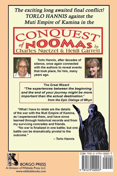 In the third book of this epic science-fantasy series, Torlo Hannis leads a series of missions against the tyranny of Kamina. When he's captured and forced to entertain savage Mutis in their cruel killing arenas, the strange Muti, Sziat, guides Torlo on a puzzling journey that reveals the true extend of the empire's malice. Now the Prophet Kalinis is demanding that all must submit to its absolute power. Can Torlo and Sziat successfully challenge this...CONQUEST OF NOOMAS? The thrilling conclusion to the Noomas Saga, which began with "Torlo Hannis of Noomas" and continued with "Slavegirl of Noomas."